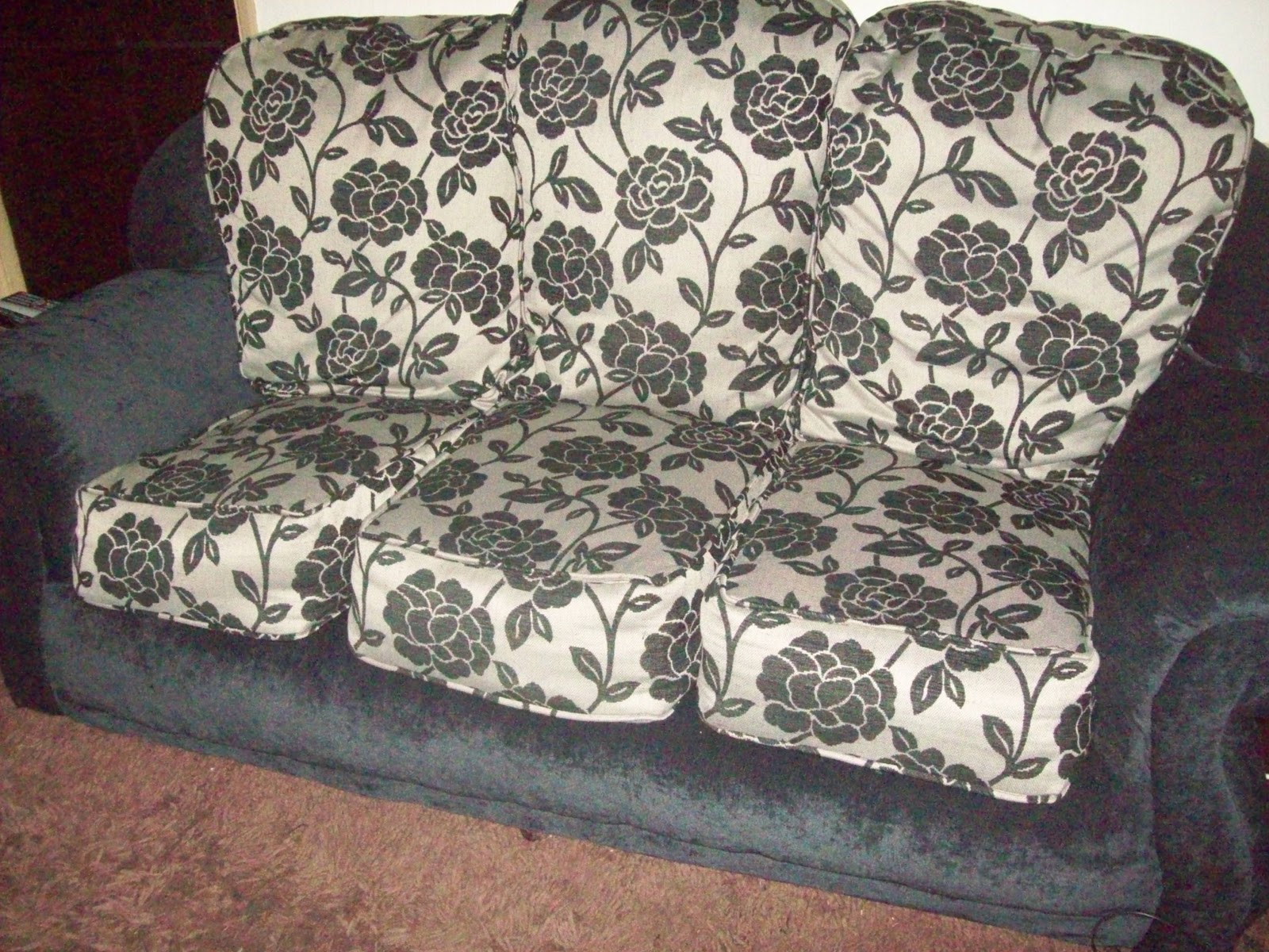 We have been looking for a new sofa for our front room but all the ones within our price range have been either too ugly, the wrong colour or too uncomfortable so my Other Half asked me how I felt about recovering our old one again. I say again as I have covered it twice now, the first time I used a cheap fabric which didn't last very long and looked shabby quite quickly. The last time I did it the fabric was a better quality but the colour doesn't go with our room these days. We were given a black leather two seater sofa a while ago which was nearly new so we wanted a new sofa that would look right with the black leather.